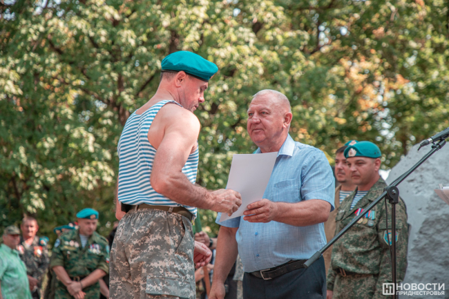 «Созданные 92 года назад войска ВДВ по праву стали элитой и наиболее боеспособным родом войск, которые всегда были на рубеже, защищая Родину. Так было в годы Великой Отечественной войны, в Афганистане, на Кавказе и у нас в Приднестровье. И поэтому, наверное, в 1992 году первые миротворцы, российские миротворцы, которые вошли и остановили кровавую бойню, принесли мир на берега Днестра, были сформированы именно из десантников», – сказал председатель горсовета.