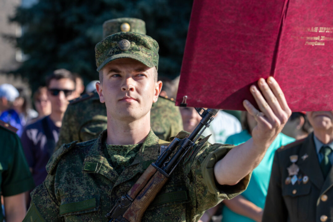 Тирасполь, 12 июля. /Новости Приднестровья/. Молодое пополнение Вооруженных сил ПМР приняло военную присягу. Торжественные церемонии прошли в ряде подразделений.