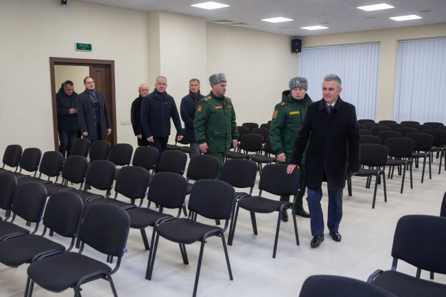 Президент вручил государственные награды. По завершении торжественной церемонии глава государства и другие приглашенные осмотрели новый институтский корпус. Это построенное с нуля многоэтажное здание, рассчитанное на организацию учебного процесса и комфортное пребывание 200 курсантов. Общая площадь 4 200 квадратов. Здесь размещены классы, казарменные помещения, кабинеты офицеров-преподавателей, кухня, столовая, актовый зал. Смонтирована система видеонаблюдения, обеспечено кондиционирование помещений, на лестничных пролетах – датчики движения, обеспечивающие своевременное освещение пространства. Оборудованы три компьютерных класса. В учебных кабинетах – интерактивные доски. В пищеблоке современная техника. Его персонал рассказал, что в два захода готов накормить до 300 человек.