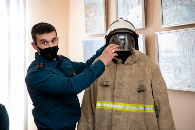 Истории пожарных впечатлили ребят: выслушав рассказы, они охотно принялись примерять экипировку огнеборцев.