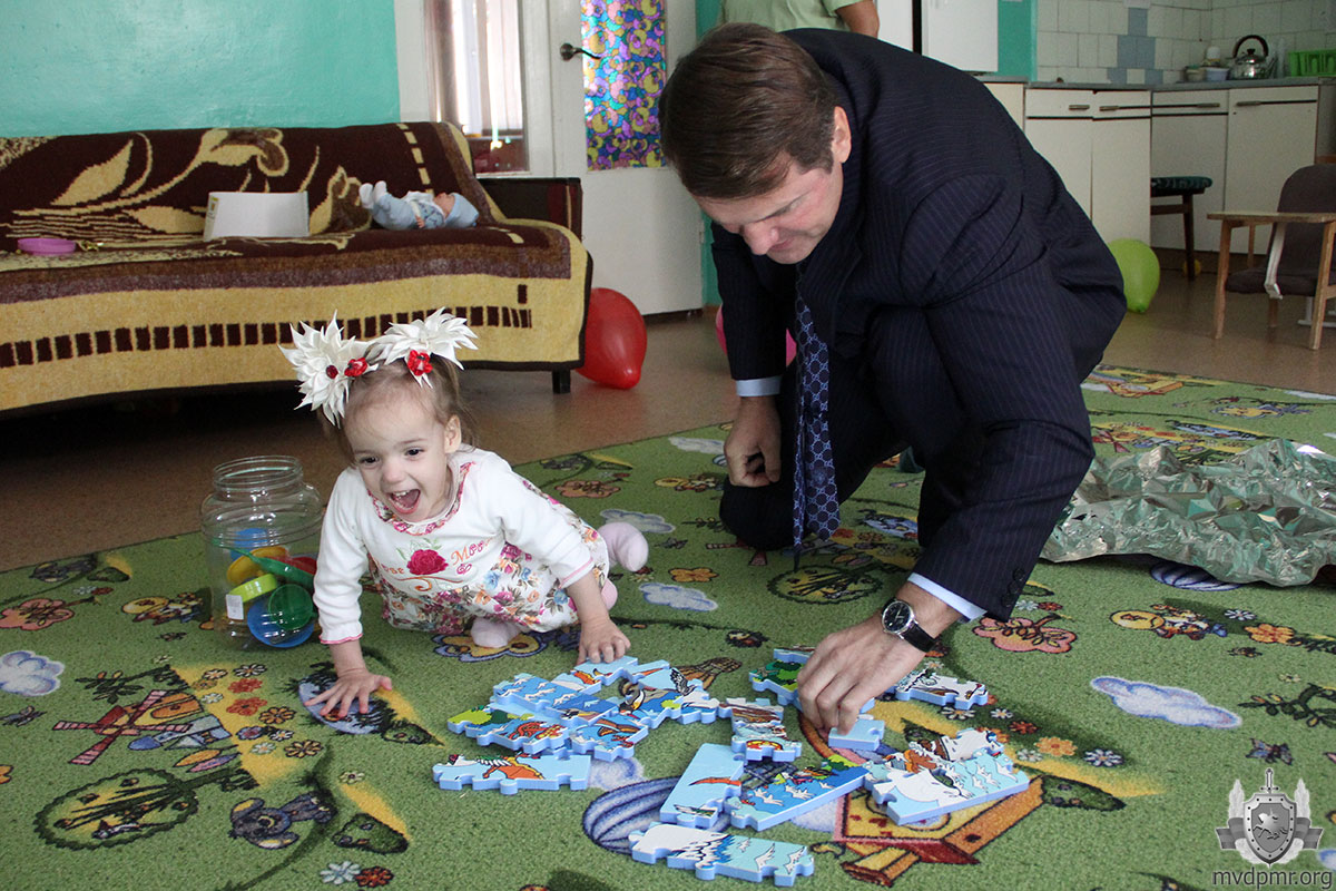 Работники детдома – не единственные люди, которые её опекают. Летом 2017 года патронаж над ней взяло Министерство внутренних дел. И с тех пор ни один из праздников в жизни Веры не обходится без сотрудников ведомства. Вот и сегодня, в день трёхлетия, её навестил глава МВД Руслан Мова. Министр подарил малышке развивающие игрушки.