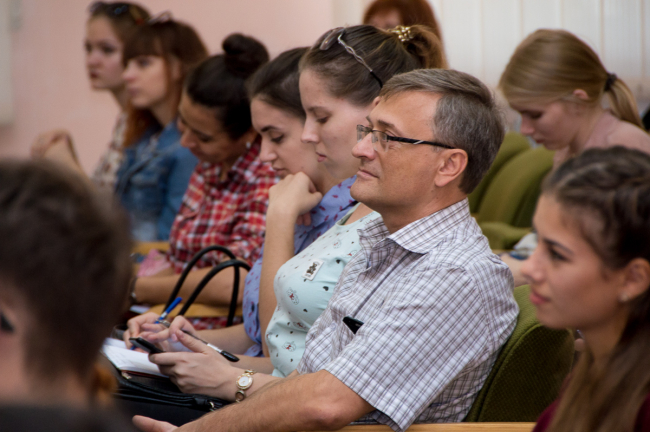 Российский гость расположил к себе аудиторию уже с первой минуты. Интересная и легкая подача информации, улыбка, открытость спикера, шутливые истории из жизни за более чем 30-летний опыт работы: студенты журфака и уже действующие мастера пера слушали Олега Щедрова внимательно, не пропуская ни единого слова.