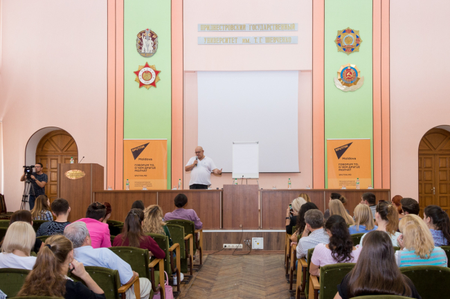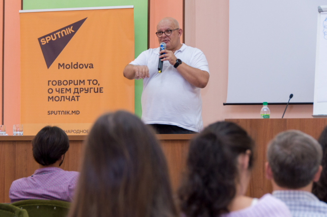 Тирасполь, 14 сентября. /Новости Приднестровья/. Как правильно рассказать историю в интернете так, чтобы надолго завоевать внимание читателя. Своими секретами сегодня с приднестровскими журналистами в стенах Приднестровского госуниверситета поделился руководитель учебных программ МИА «Россия сегодня» Олег Щедров. Один из ведущих тренеров в области практической журналистики приехал в Тирасполь по приглашению международного информационного агентства Sputnik в рамках Школы инновационной журналистики.