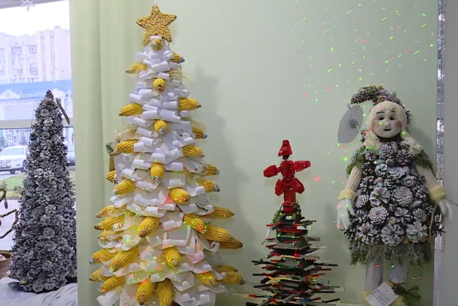 На конкурс поступило около 30 работ. Это новогодние деревья из шишек, металла и даже из кукурузы. Главными условиями были креативный поход и экологичность при создании работы.