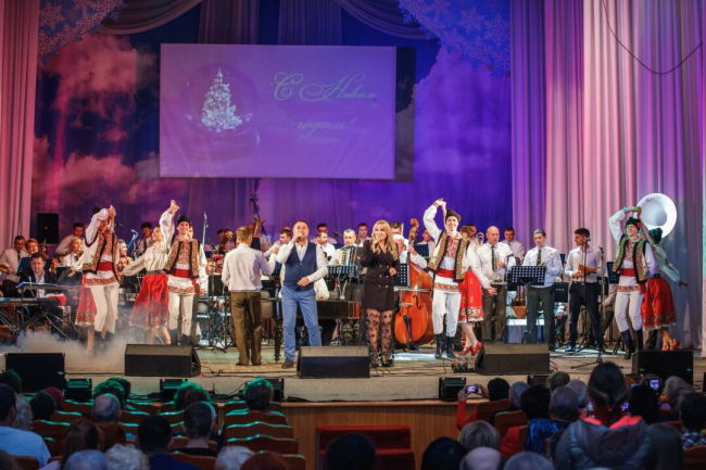 Зрители смогли насладиться новинками новогоднего концерта. Мотивы молдавских мелодий в исполнении тарафа, а также Натали Дилан и Олега Савенко сопровождались зажигательными выступлениями ансамбля танца и народной музыки «Виорика».