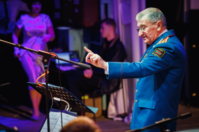 Военные музыканты – заслуженные артисты и отличные работники культуры во главе с главным дирижером, народным артистом ПМР Виталием Войновым, подготовили новую музыкальную программу – песни на русском, молдавском, украинском, итальянском и английском языках. Со сцены звучали классические произведения и музыкальные композиции современных авторов и популярных эстрадных исполнителей, сообщает пресс-служба Минобороны.
