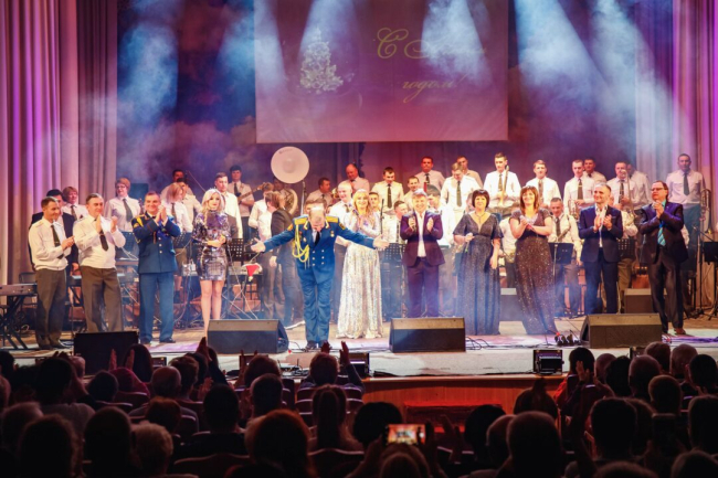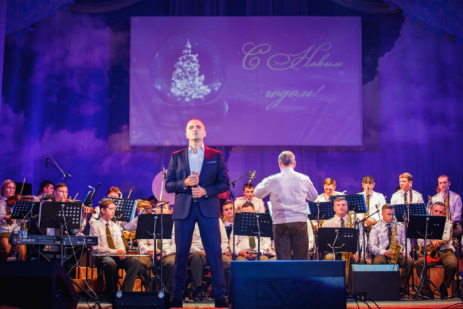 В завершение праздничного концерта солисты и оркестр исполнили композицию «С Новым годом!» и поздравили гостей с наступающими праздниками.