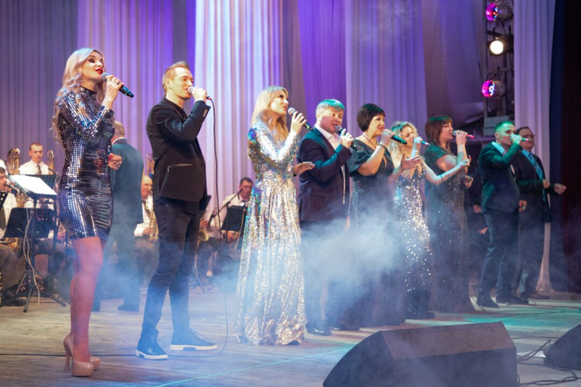 С первых минут Виктория Лозинская и Петр Длужневский погрузили зрительский зал в новогоднюю сказку, исполнив музыкальные композиции «А снег идет» и «Белый снег». Особое впечатление на гостей праздника произвела композиция Григория Лепса «Вьюга» в исполнении Артема Демченко и Натальи Кирка. Вокалисты окунули зрителей в заснеженную праздничную атмосферу.