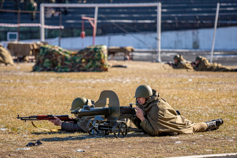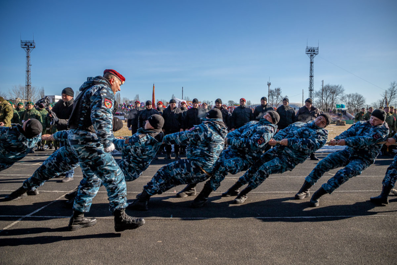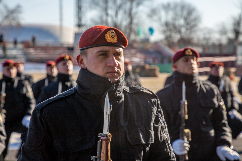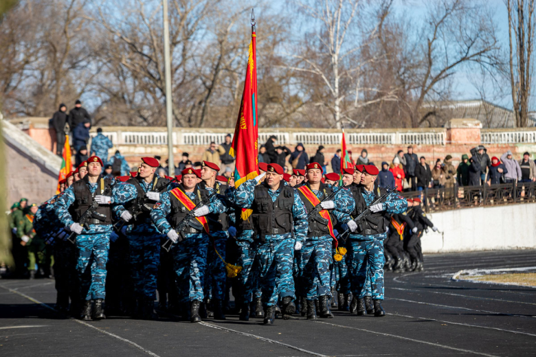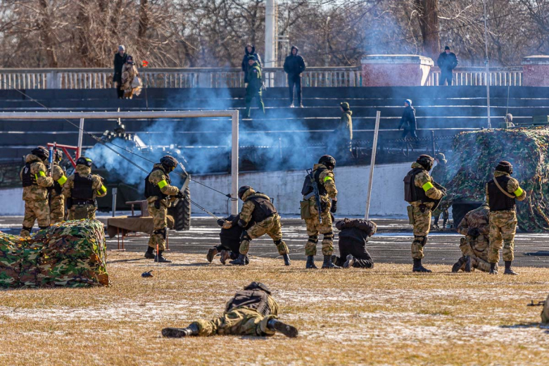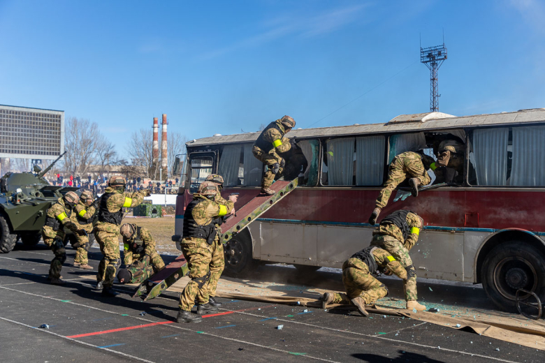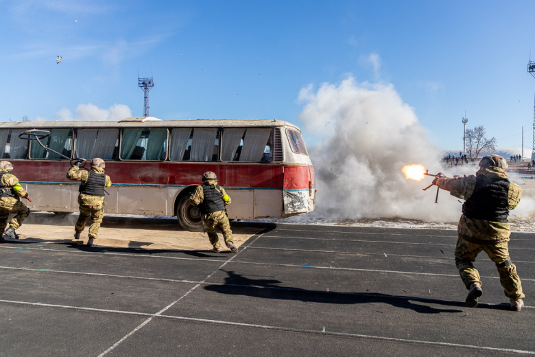 Программа продолжилась выполнением строевых приёмов с оружием. Силовики продемонстрировали, насколько умело они работают с автоматом, малой пехотной лопаткой и штык-ножом. Показали приёмы рукопашного боя и работу с радиостанцией.