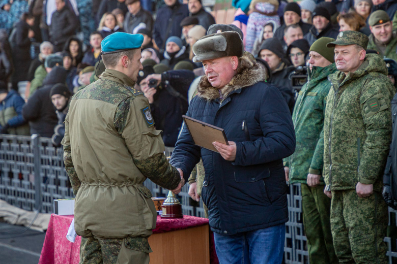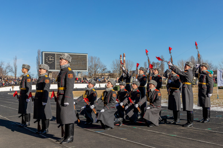 Когда вся соревновательная программа завершилась, президент Вадим Красносельский поздравил участников праздника с наступающим Днём защитника Отечества. Он отметил, что нынешние военнослужащие – потомки героев, защищавших приднестровские рубежи в суворовские времена, солдат-освободителей времён Великой Отечественной войны, защитников Приднестровья начала 1990-х годов.