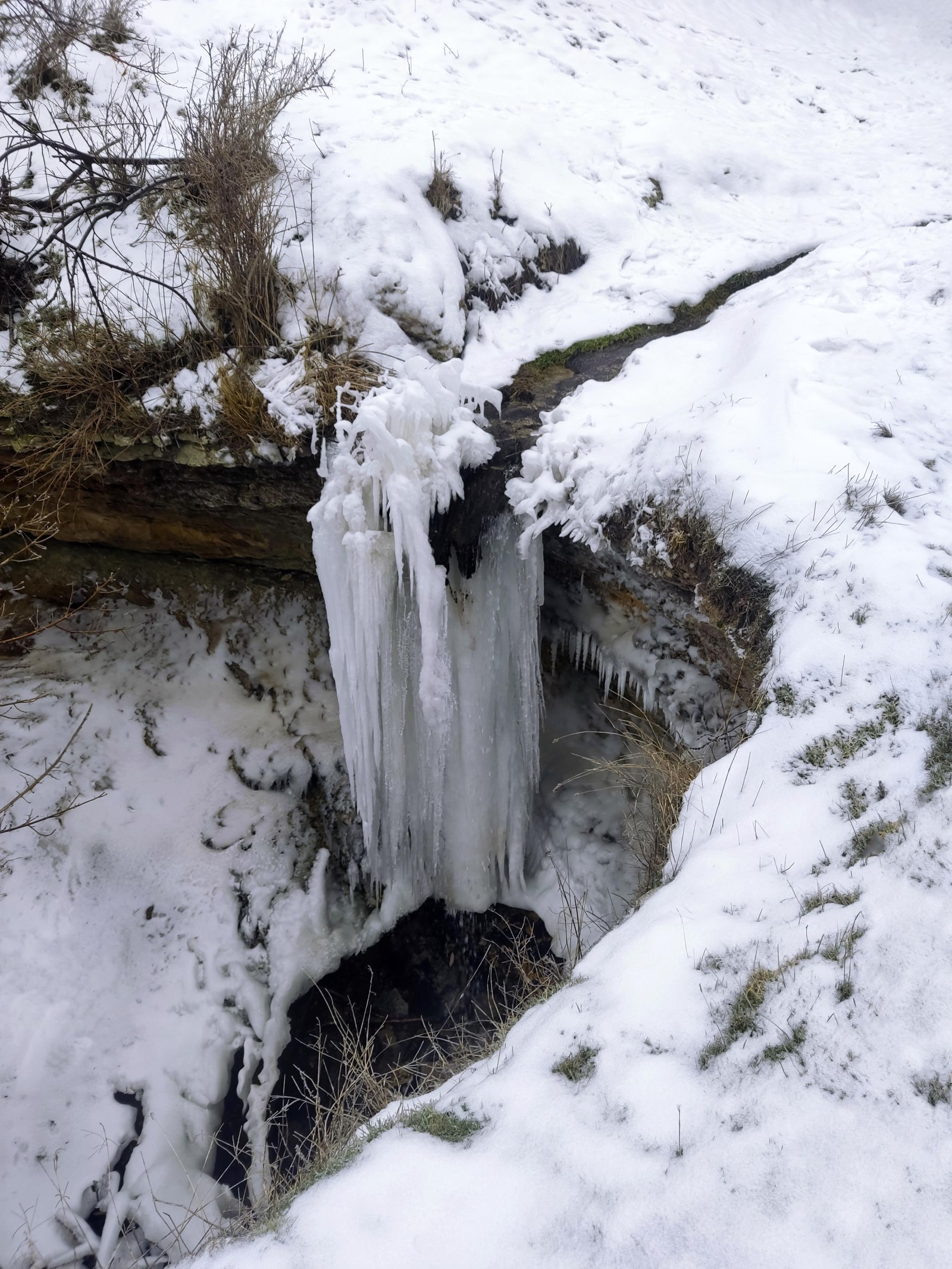 А можно и замерзнуть, как небольшой водопад в Роговском каньоне. Это овраг дедушки Фоники («Рыпа луй мош Фоникэ»). Приднестровский Гранд-каньон. Он образовался сотни тысяч лет назад – подземные воды разбили мягкие известняковые отложения Сарматского моря, находившего здесь 10 миллионов лет назад.