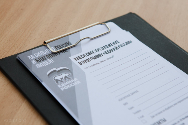 Внести своё предложение в программу «Единой России» могут все желающие. Для этого необходимо заполнить специальную анкету, которую предложат волонтеры партии «Обновление». После этого наказы соотечественников и граждан России, проживающих в Приднестровье, будут проанализированы и направлены для включения в предвыборную программу единороссов.