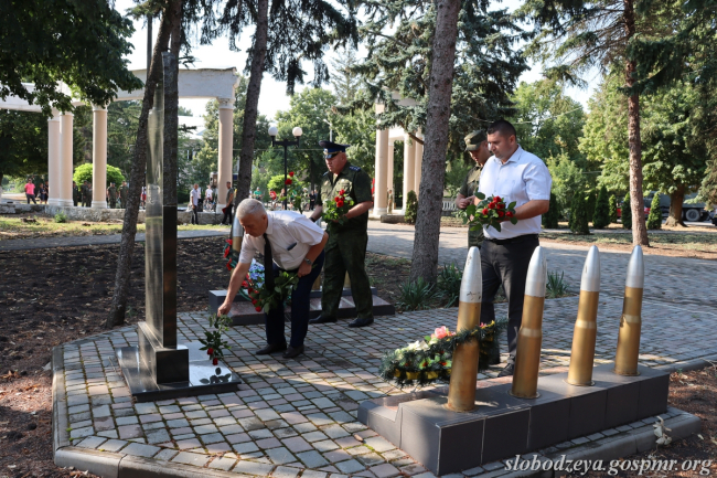 Живые цветы возложили к памятникам погибшим защитникам Приднестровья, начальнику районного штаба Народного ополчения А. Гусару, воинам-интернационалистам, обелиску Мемориала Славы.