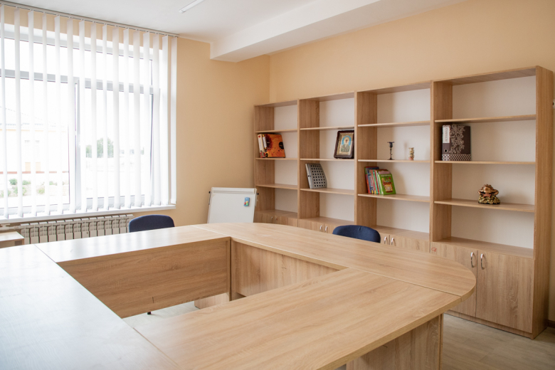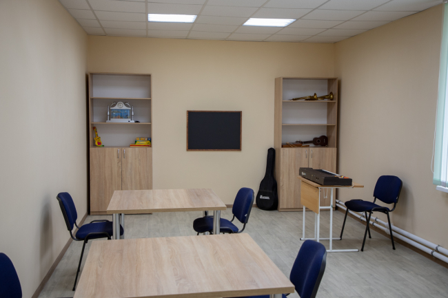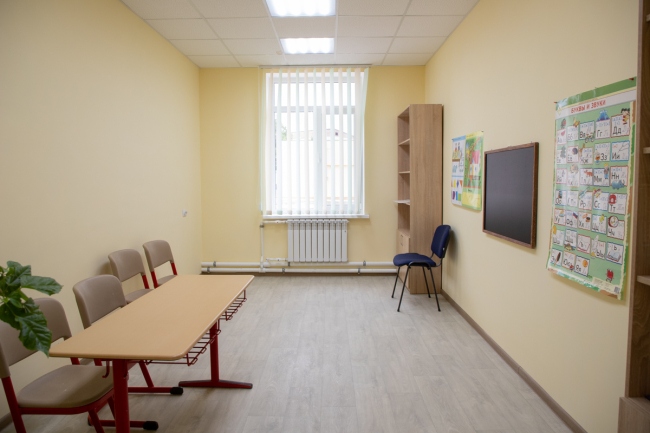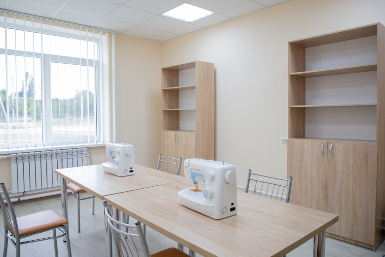 Центр предназначен для социализации детей. Специально для этого предусмотрены комнаты трудотерапии для мальчиков и девочек, а также кабинет социально-бытовой адаптации. Их обустройство только началось, пока там есть только стиральная машина, холодильник и швейные машинки.