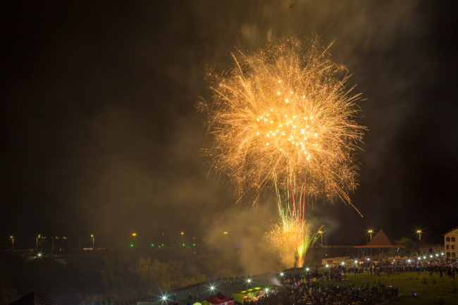 Несмотря на похолодание, людей в парке меньше не становилось. Одевшись в тёплые куртки, они стекались на праздник. В 20:00 в небе прогремел салют. Грандиозное зрелище зрители встретили аплодисментами.