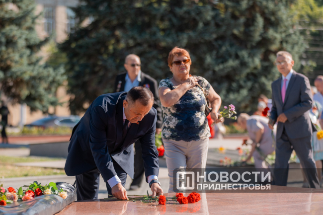 В памятном мероприятии приняли участие председатель Правительства Александр Розенберг, первый Президент ПМР Игорь Смирнов, депутаты, ветераны, общественные деятели и жители города.