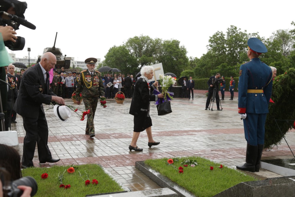 Первый венок к Мемориалу Славы возложил Президент ПМР Вадим Красносельский. Затем венки возложили также председатель Правительства Александр Мартынов, председатель Верховного Совета Александр Щерба и первый Президент ПМР Игорь Смирнов.