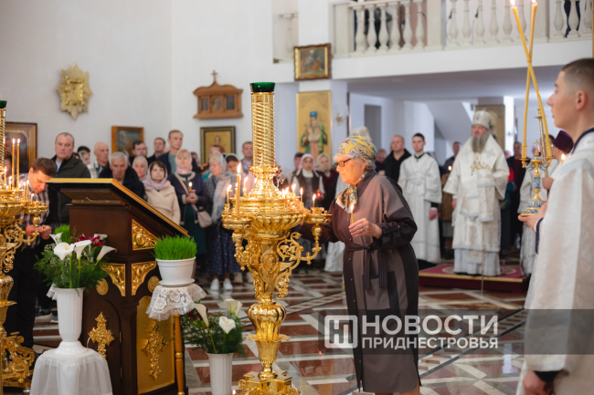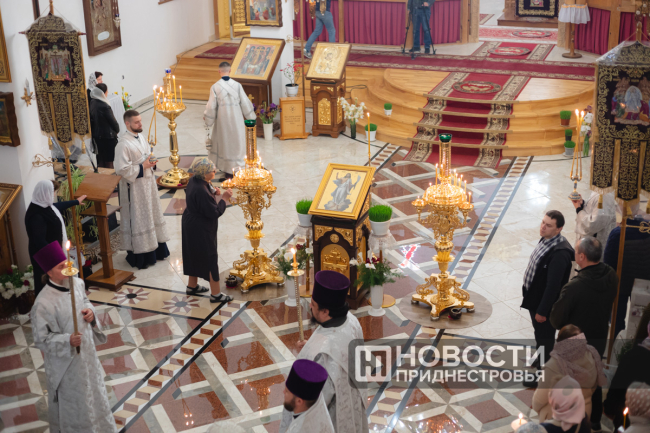 Во время божественной литургии Архиепископ Тираспольский и Дубоссарский Савва приветствовал прихожан сакральным «Христос воскресе!», услышав в ответ «Воистину воскресе!». Продолжила торжественную службу церемония освящения пасхального хлеба. В завершение богослужения Правящий Архиерей обратился к собравшимся с архипастырским наставлением и поздравил паству со Светлым праздником Пасхи.