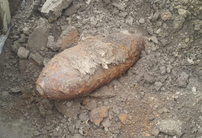 Специалисты обнаружили вкопанную на глубину около 10 см головную часть авиационной бомбы времён Великой Отечественной войны.