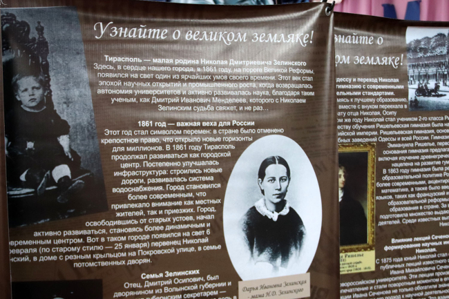 Передвижная выставка, посвященная Николаю Зелинскому, экспонируется в Дубоссарах