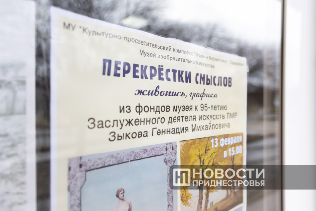 Тирасполь, 13 февраля. /Новости Приднестровья/. В тираспольском Музее изобразительного искусства (картинной галерее) открылась выставка работ Заслуженного деятеля искусств ПМР Геннадия Зыкова. Экспозиция «Перекрёстки смыслов» посвящена 95-летию со дня рождения знаменитого мастера кисти, члена Союза художников СССР, автора многочисленных произведений, вошедших в золотой фонд культуры ПМР.