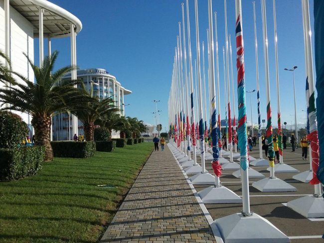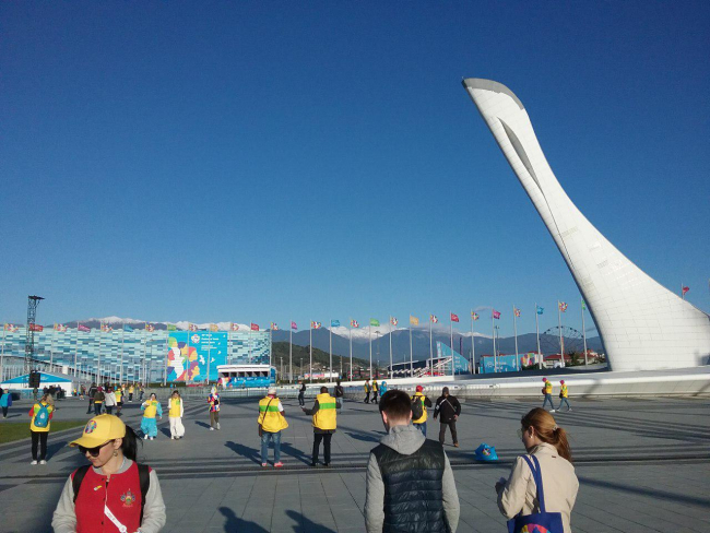 Несмотря на то, что в Сочи до сих пор не распогодилось, а ветер вчера дул так, что казалось, вот-вот «лопнут его щёки», Олимпийский парк полон приветливых улыбок всех народов мира. Участники фестиваля, которых набралось гораздо больше, чем ожидали организаторы, создают невероятную концентрацию пассионарности, иногда кажется, что находишься в миниатюрной демо-версии планеты Земля.