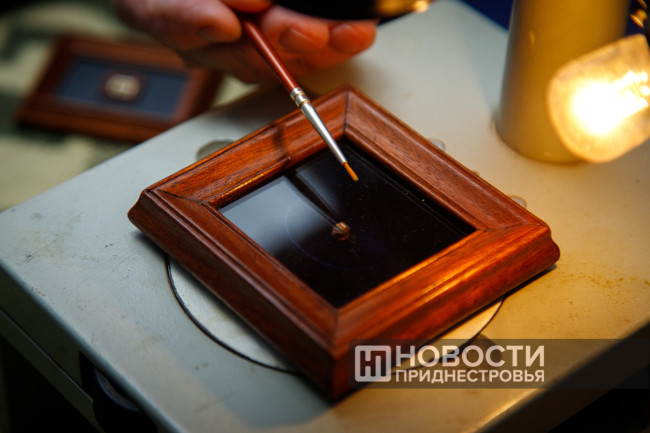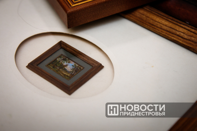 В истории известны миниатюристы, которые делали рисунки на конском волосе или рисовых зернах. Но там другая техника нанесения изображения, объясняет Николай Петрович. А так чтобы писать картины на сверхмалой поверхности маслом, да еще и пейзажи, таких мастеров приднестровский художник больше не знает. Николай Дмитриенко единственный в мире художник такого масштаба.