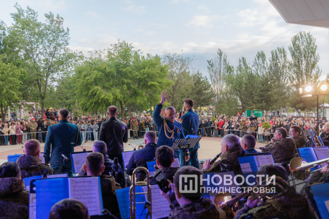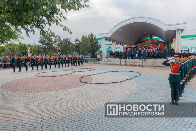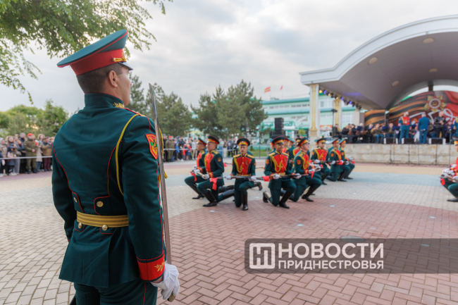 Тирасполь, 10 мая. /Новости Приднестровья/. Накануне вечернюю программу 80-летия Великой Победы украсили праздничный концерт оркестра главного штаба Вооруженных сил, выступление роты почетного караула и салют.