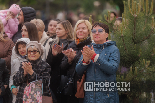 Специально приглашенные гости – ансамбль скрипачей рыбницкого Дворца культуры – исполнили композицию из саундтрека фильма «Ликвидация». Звучала и легендарная песня из «Семнадцати мгновений весны». Ее проникновенно исполнил юный артист из Бендер - учащийся 8-го класса Андрей Кирман.