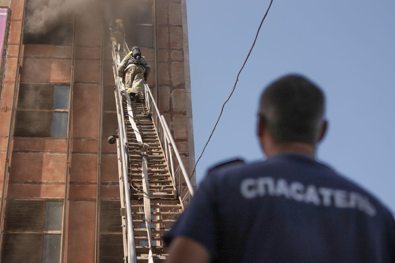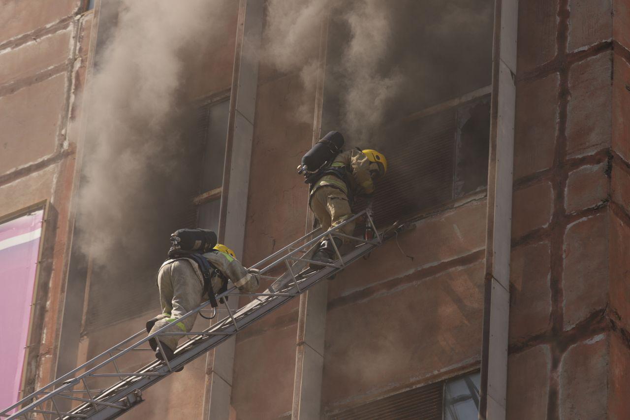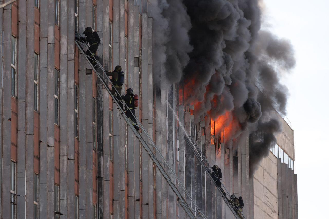 20:37 Пожарные работы продолжаются более восьми часов. Из-за высокой температуры огонь перекинулся на 6-й этаж. Пожарный расчёт столицы останется для контроля ситуации и пресечения повторного воспламенения, сообщили в МВД.