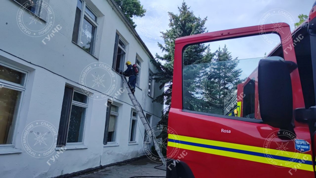 Условный пожар потушили за 7 минут, одного из воспитанников эвакуировали со второго этажа через окно