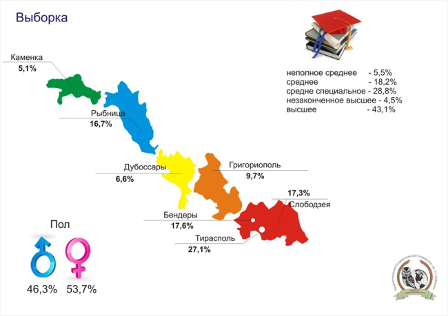 Обследование населения проводилось во всех городах и районах ПМР по репрезентативной случайной бесповторной выборке общим количеством 960 респондентов.