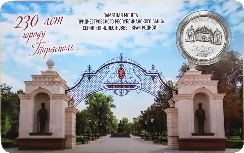 Тирасполь, 23 ноября. /Новости Приднестровья/. С сегодняшнего дня Приднестровский республиканский банк (ПРБ) вводит в обращение памятные монеты «230 лет г. Тирасполь». Они пополнят серию «Приднестровье – край родной».