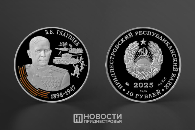 На одной из монет помещен портрет Героя Советского Союза генерал-полковника Василия Глаголева, под командованием которого части 46-й армии освободили села Коротное, Глиное и Незавертайловка Слободзейского района.