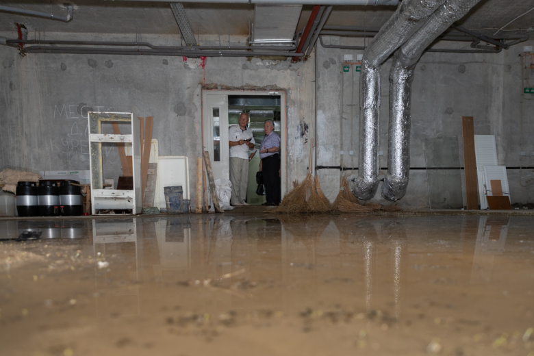 В ходе осмотра нового здания медицинского факультета выяснилось, что проблемы есть буквально везде, начиная с подвальных помещений и заканчивая крышей. После сильных дождей в подвалах скапливается слой воды до 20 см. Сотрудники факультета говорят, что каждый раз сами вычерпывают эту воду.