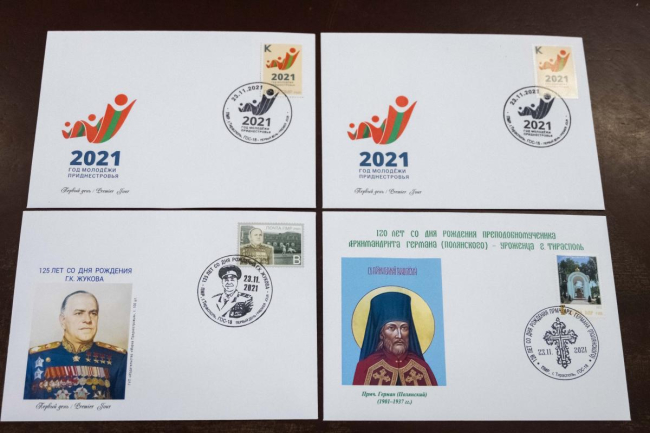 Тирасполь, 23 ноября. /Новости Приднестровья/. Сегодня на столичном главпочтамте состоялось спецгашение почтовых марок, посвящённых 125-летию со дня рождения великого полководца Георгия Жукова, 120-летию Германа Тираспольского и Году молодёжи. Каждую из них сопровождает оригинальный конверт первого дня (КПД).