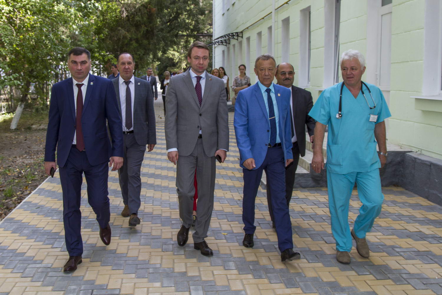 Премьер-министр побывал сегодня и в Рыбницкой центральной больнице, где осмотрел инфекционное отделение. Председатель Правительства посещал его ещё в 2017 году, когда формировался первый Фонд капвложений на 2018-й. В прошлом году отремонтировали полностью первый этаж инфекционного отделения. В этом году сделали фасад, крышу и ведут работы на втором этаже.