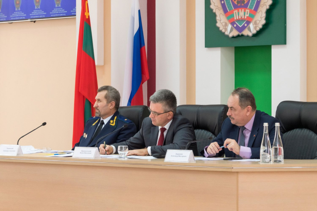 Александр Трояновский рассказал также о проверках в пенитенциарных учреждениях (в минувшем году их было семь) и о выявленных нарушениях. Особо остановился на состоянии изоляторов временного содержания, отметив, что оно улучшено. В качестве положительного аспекта отмечено приведение в надлежащий вид и оснащение компьютерной техникой следственных комнат. Говорил и. о. Прокурора ПМР о взаимодействии с различными органами госвласти и управления, отметив, что в отчётном году чётко исполнялось поручение президента о как минимум ежеквартальном проведении совместных расширенных заседаний. Речь шла и об участии прокуроров и сотрудников прокуратуры в законотворческой работе.
