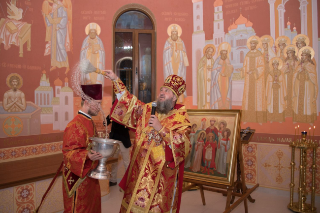 Этой ночью в присутствии руководства страны, духовенства, прихожан часовню освятили, сообщает пресс-служба Президента ПМР. Божественную литургию провёл архиепископ Тираспольский и Дубоссарский Савва. В ночной молитве поимённо вспомнили всех членов августейшей семьи: последнего русского императора Николая II, его жену и детей, а также медика и троих слуг.