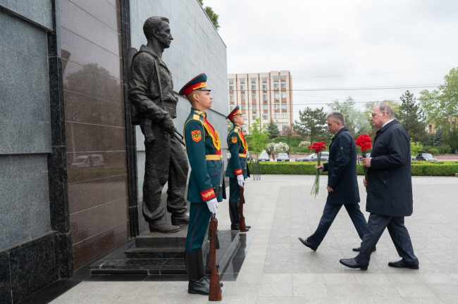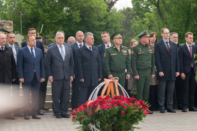 Почтили память погибших также Чрезвычайный и полномочный посол РФ Олег Озеров, военнослужащие, кадеты, юнармейцы и жители Тирасполя