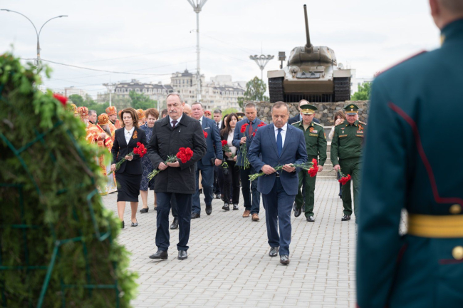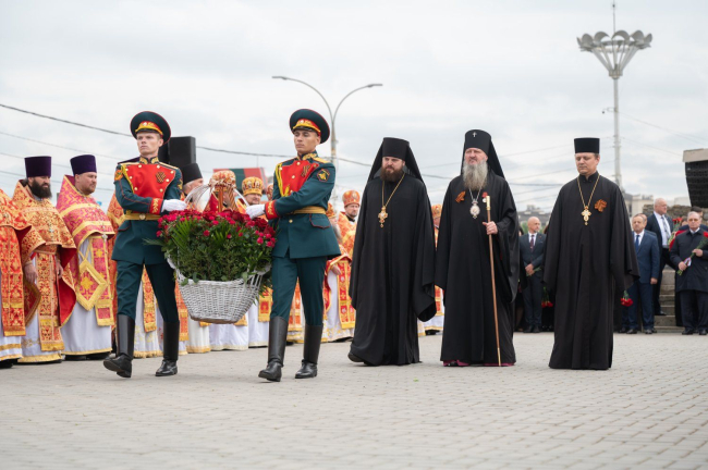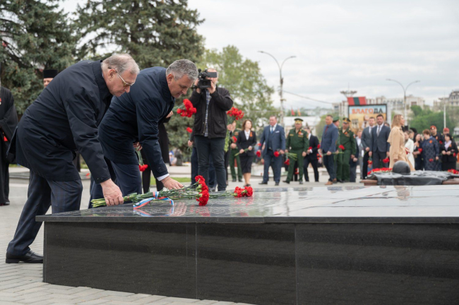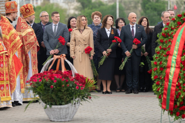 Подобное мероприятие проводится на этой площадке впервые. Участие в божественной литургии приняли первые лица государства во главе с Президентом ПМР Вадимом Красносельским. Присоединился к всеобщей молитве и российский посол Олег Озеров. По завершении церковной части – литургии и литии – состоялась церемония возложения цветов. Глава государства от имени приднестровского народа и всех благодарных потомков возложил венок к Вечному огню, корзину к памятнику Неизвестному солдату и россыпь гвоздик к мемориальным плитам.