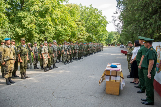 Сегодня же наиболее отличившимся военнослужащим Парашютно-десантного подразделения специального назначения Министерства обороны ПМР были вручены ведомственные награды, десантникам, совершившим первый прыжок с парашютом – голубые береты.