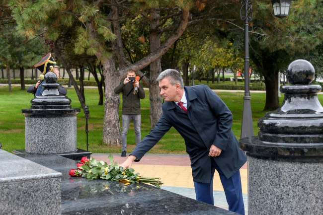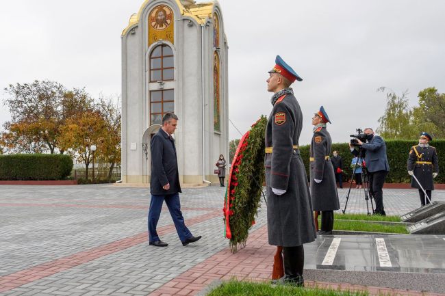 Президент ПМР в День народного единства возложил цветы на столичном Мемориале Славы