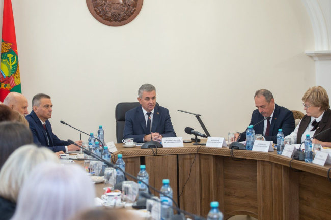 Тирасполь, 17 октября. /Новости Приднестровья/. Президент ПМР Вадим Красносельский провел расширенную встречу с руководством Федерации профсоюзов Приднестровья, отраслевых и территориальных объединений, первичных профсоюзных ячеек крупных предприятий и организаций республики. Информационно-дискуссионное мероприятие прошло в Доме официальных приемов Администрации Президента ПМР.