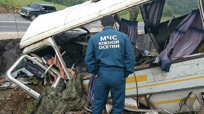 Сегодня стало известно, что автобус, перевозивший российских военных в Южной Осетии, сорвался в пропасть с высоты 46 метров в районе населенного пункта Горет, в результате чего шесть человек погибли, 16 получили ранения, четверо из них находятся в реанимации. По предварительным данным, причиной произошедшего стал отказ тормозов автобуса в условиях плохой видимости на горной дороге, сообщает РИА «Новости».