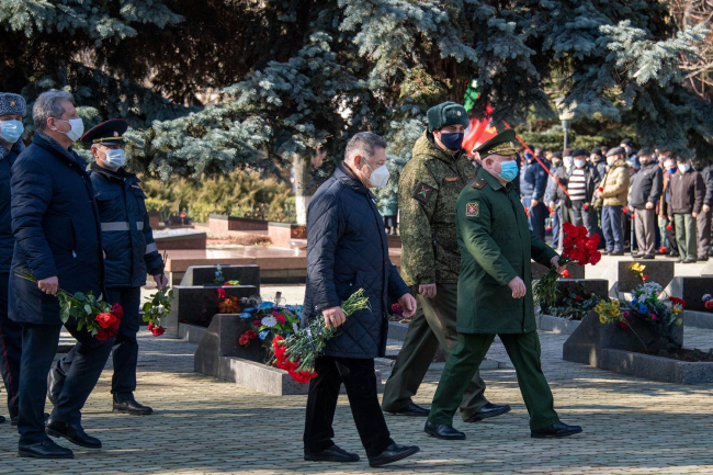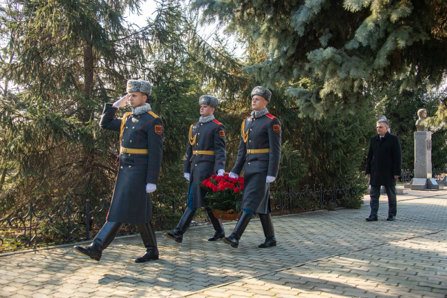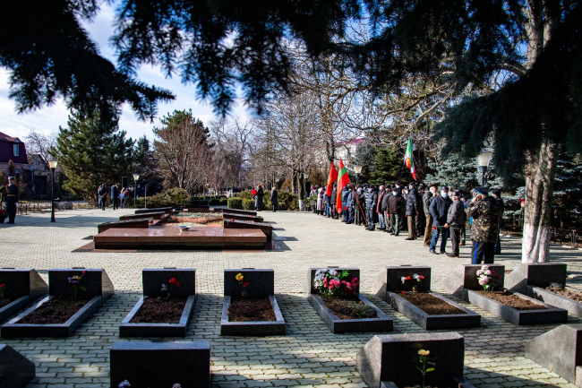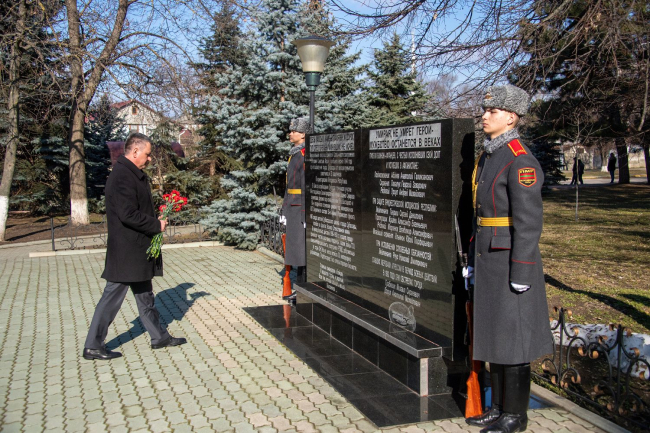 Дубоссары, 2 марта. /Новости Приднестровья/. Президент ПМР Вадим Красносельский возложил цветы к каменной плите, установленной в память о защитниках Приднестровья, а также к каждой из 34 могил, расположенных на Мемориальном комплексе Воинской славы города Дубоссары. Участие в траурной церемонии приняли руководители органов государственной власти и управления, госадминистрации и горрайсовета, военнослужащие, члены общественных организаций, жители Дубоссар и гости города. Память погибших героев почтили минутой молчания, передает пресс-служба главы государства.