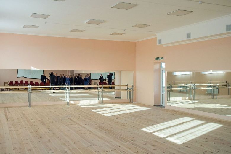 Помещения нового корпуса осмотрел Вадим Красносельский. Спрашивал, согласовывался ли проект с коллективом учреждения. Президенту рассказали, что здание продумано до мелочей, учтены все особенности занятий хореографией, потребности учеников и педагогов.