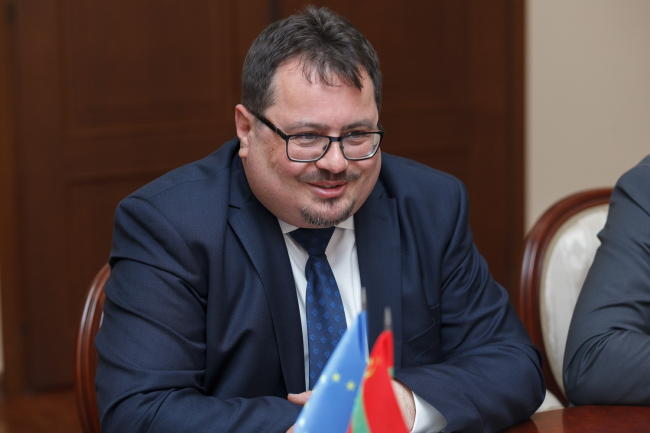 Приветствуя делегацию во главе с Послом Петером Михалко, Вадим Красносельский отметил вклад Делегации ЕС в Молдове в развитие торговых отношений между Евросоюзом и Приднестровьем.