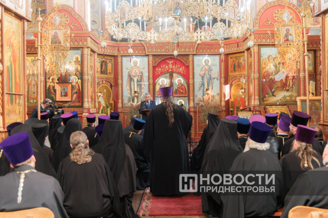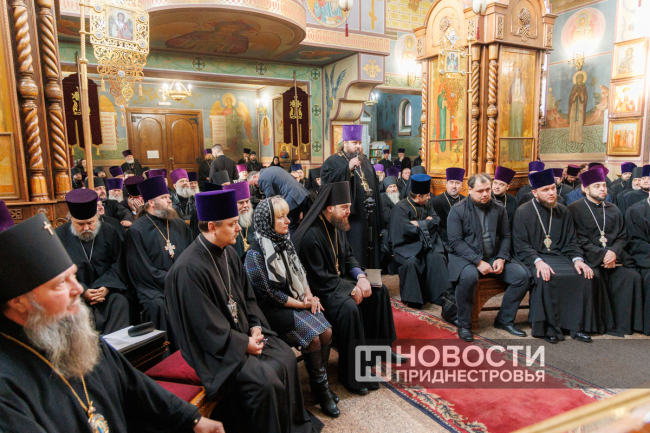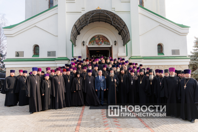 Тирасполь, 24 декабря. /Новости Приднестровья/. В столичном кафедральном соборе Рождества Христова прошло Епархиальное собрание. Цель мероприятия – подведение итогов года. Участники – священнослужители со всей республики во главе с Архиепископом Тираспольским и Дубоссарским Саввой. Среди приглашенных гостей – Президент ПМР Вадим Красносельский.