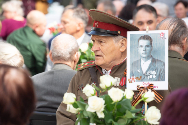 «Поколение Победителей уходит. Остались единицы. Сейчас, к счастью, вы рядом с нами, а мы рядом с вами. Но в памяти, я убежден в этом, и нынешнего, и последующих поколений вы останетесь навсегда. Нас так воспитывали, нас так учили, мы так живем. Изучая историю, понимаешь, насколько был велик подвиг буквально каждого представителя поколения Победителей: и на фронте, и за линией фронта, и в концлагерях, и на земле - тяжелейший труд в сельском хозяйстве, и на производстве. Все приближали Победу. Не раз я спрашивал у людей старшего поколения: что для вас самое яркое в жизни? Все задумывались, но ответ всегда был один: 9 Мая. И каждый вспоминал, как он встретил этот праздник. Кто в госпитале, кто в тылу, кто за работой у станка, кто, в принципе, еще на поле боя. Но это был праздник. Это была Победа. Настоящая Победа. В которую, может быть, не верили западные стратеги, которые абсолютно исключали такую возможность, – государства "оси". Но тем не менее это была победа. Победа над нацистско-фашистской идеологией. Победа добра над злом. Я уже не раз говорил, что сегодня уже не попытки переписать историю. Она уже переписывается, к сожалению. И мы в Приднестровье как бастион правды, бастион здравого смысла с историей, которая была на самом деле и которую мы из поколения в поколение передаем и будем передавать.